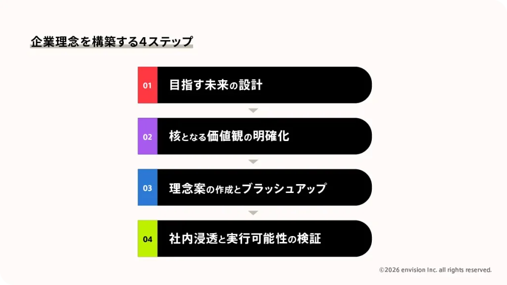 ここでは、企業理念を構築する基本的な4つのステップを紹介します。