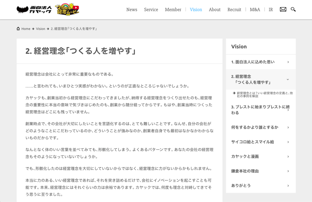 出典:面白法人カヤック「2.経営理念『つくる人を増やす』」