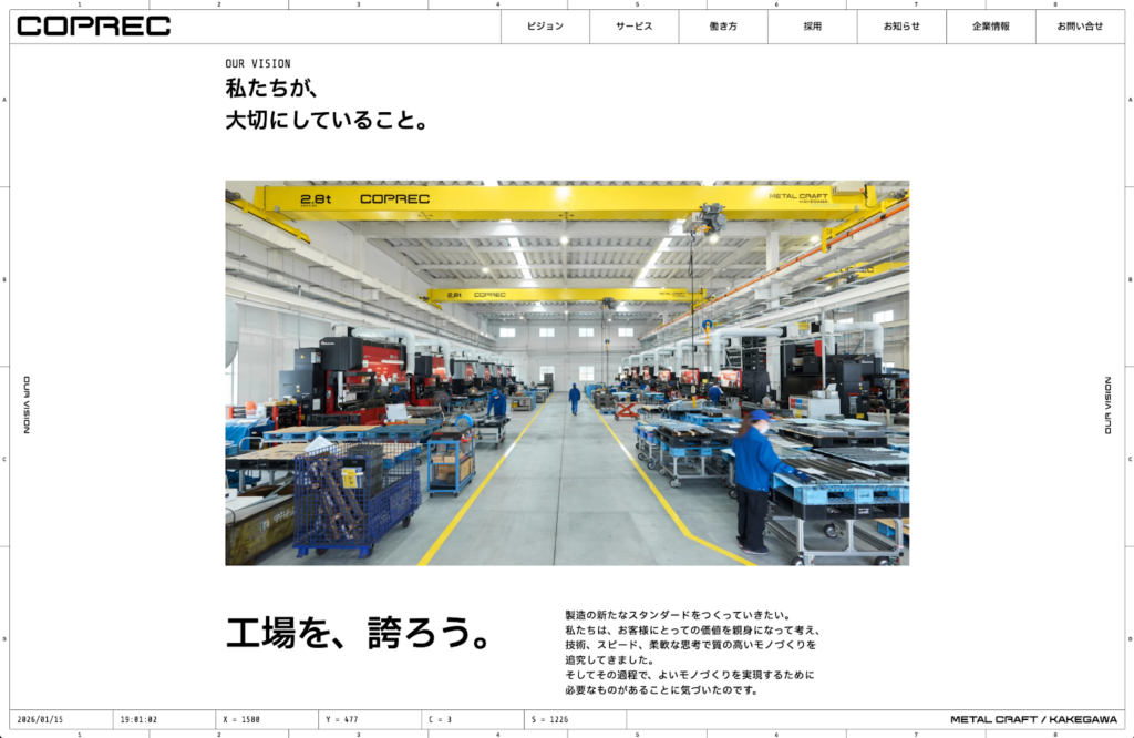 精密板金加工業を営むコプレックでは、「工場を、誇ろう。」をビジョンに掲げ、内装や作業着のデザインをリニューアル。現場で働く人々の作業環境を大幅に改善することで、従業員エンゲージメント向上を図ったほか、作業員の地位の見直しを業界全体に提唱するアクションとして注目を集めています。