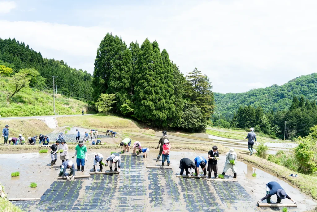 たとえば、今おなじみになっている田植え・稲刈り体験会も、うちの蔵人が米づくりに苦労していたのを見たのがきっかけでした。農業の素人が、棚田で無農薬の米づくりをするって、やっぱりものすごく大変なんです。ですからその作業を分け合える人を増やそうと思って、最初は物産展の常連さん5人ぐらいに声をかけて始めました。