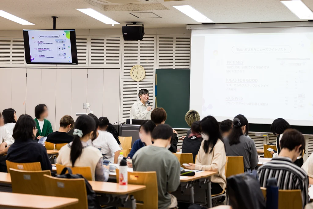 2025年10月20日(月)、成安造形大学にて、2年生を対象とした講義「キャリアデザイン演習A」を担当しました。100分の講義を2回にわたって行い、合計約120名の学生にご参加いただきました。